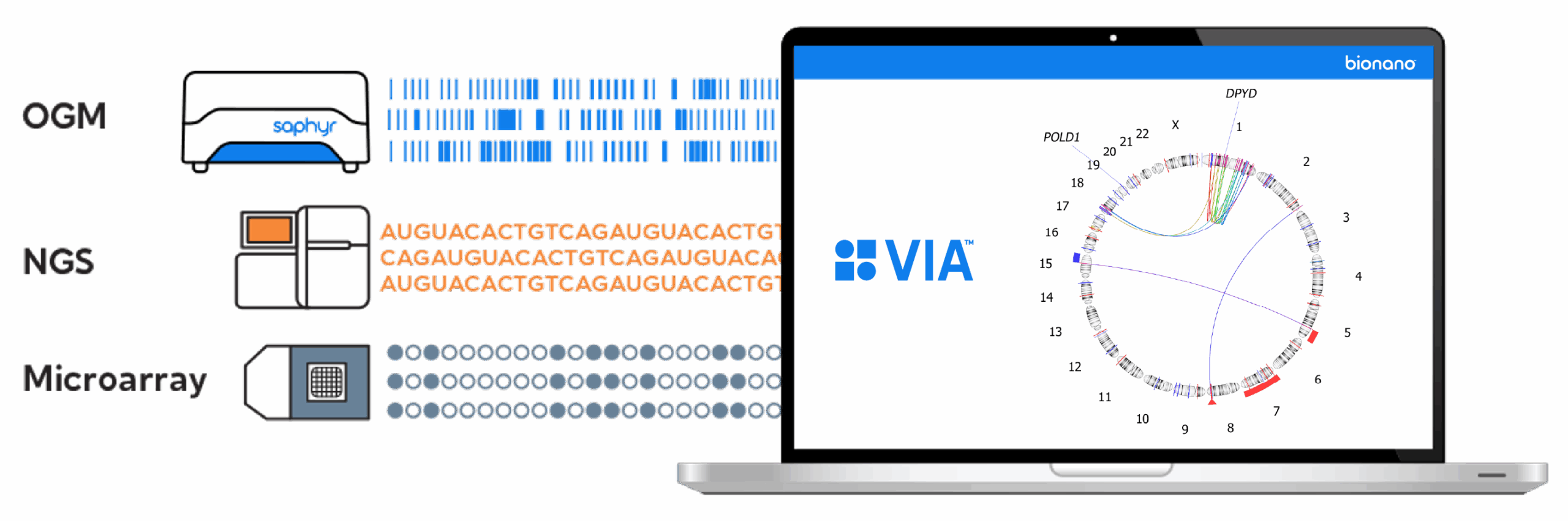 - View and analyze OGM, NGS, and microarray data without switching between systems.